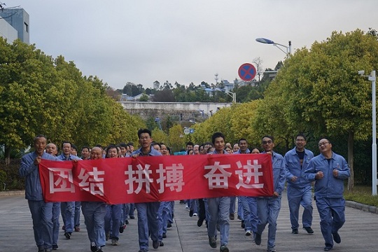 2019年1月3日,公司组织职工开展“迎新年、强体魄、鼓士气、聚力量、创辉煌”穿厂跑活动。其目的就是促进职工积极参与全民健身,提高身体素质,充分展示云开人的精神风貌,不断增强员工的团队意识和凝聚战斗力,以饱满的“精、气、神”,用健康的体魄迎接新的挑战。