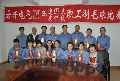 为推进公司(厂)职工文化建设的深入开展,丰富职工的业余文化生活,提高广大职工的身体素质,增进各分工会之间的团结友谊,促进公司(厂)生产经营的发展,构建和谐云开,云南云开电气股份有限公司工会于2015年9月6日举办了2015年“迎国庆、庆中秋”职工羽毛球比赛活动。本次活动共设男单、女单、男双、女双、混双五个比赛项目,有43名羽毛球爱好者报名参加比赛,比赛中,参赛队员沉着冷静,顽强拼搏,比赛场面较为激烈;裁判员认真执行比赛规则,以公正、公平的原则,保证了比赛的顺利进行。比赛活动在公司领导、各分会主席、全体工作人员,以及所有参赛队员的共同努力下,经过8小时紧张激烈的角逐,于当日下午18:30圆满结束 。男单项目第一、二、三、四名分别由杨海林、张明、刘宏、高玉金获得,女单项目第一、二、三、四名分别由郭跃梅、王春仙、普晓梅、何锡玲获得,男双项目第一、二、三名分别由杨海林——张明组合、吴自良——张万臣组合、刘宏——王强组合获得,女双项目第一、二、三名分别由郭跃梅——殷芳组合、张梦——董兴梅组合、荀开啡——范利娇组合获得,男女混双项目第一、并列第二名分别由殷芳——蔡云松组合、普光萍——张万臣组合、高玉金——张双云组合获得。公司工会主席谭兴国为获得各奖项的选手颁发了奖状和奖金。